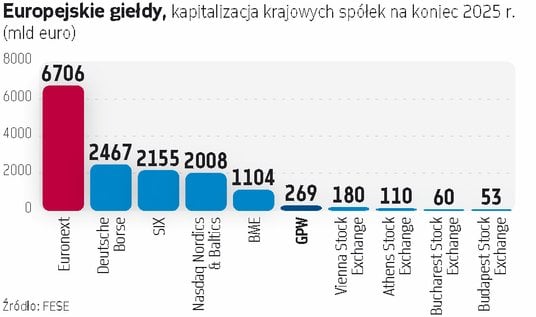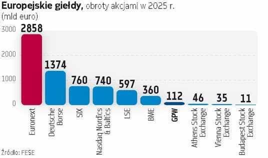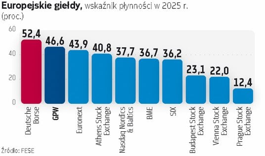 Warszawska giełda w miarę upływu lat rosła w siłę. Przez długi czas punktem odniesienia była dla nas giełda w Wiedniu. Dzisiaj ten wyścig w cuglach wygrywa jednak GPW. W 2025 r. obroty na głównym rynku akcji GPW wyniosły 111,6 mld euro i były ponad dwa razy większe niż w Wiedniu. Kapitalizacja krajowych spółek na koniec 2025 r. sięgnęła w Warszawie 269 mld euro, podczas gdy w Wiedniu było to 180 mld euro. Wskaźnik płynności w ubiegłym roku wyniósł u nas 46,6 proc., podczas gdy w Wiedniu było to 22 proc. Liczby mówią więc same za siebie.