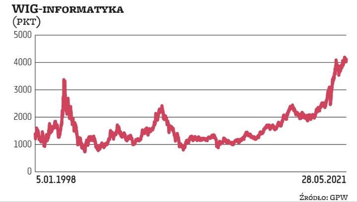 Pozytywne zalecenia zbiera też największa spółka informatyczna w kraju, czyli Asseco Poland. Jej portfel zamówień jest o 14 proc. wyższy od zeszłorocznego, a zdaniem zarządu marże w kolejnych kwartałach powinny utrzymać się na stosunkowo wysokim poziomie. Potencjał zwyżki obecnej wyceny akcji widzi m.in. DM BOŚ. Według niego w 2021 r. skonsolidowany zysk netto Asseco Poland (liczony według MSSF) wyniesie 411 mln zł przy przychodach przekraczających 13 mld zł. Pozytywne zalecenia analityków, mimo imponującej zwyżki wyceny w ostatnich kilkunastu miesiącach, ma na koncie też LiveChat. Te trzy spółki – czyli Asseco, Comarch i LiveChat – najwięcej ważą w portfelu WIG-informatyka. Łącznie mają ponad 68 proc. udziałów.