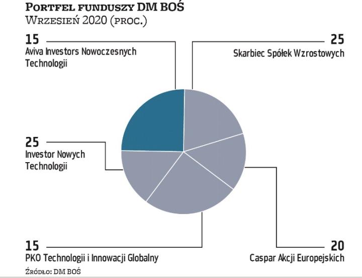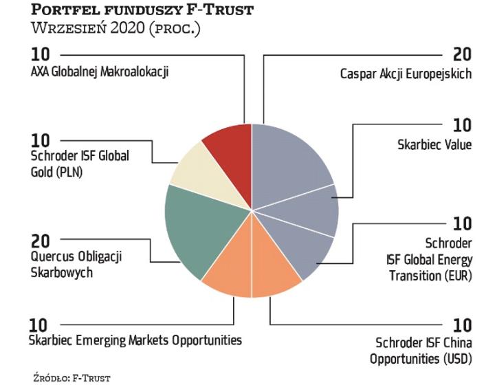 Obecna edycja portfela funduszy trwa od października ubiegłego roku, a więc rozpoczyna się 12. miesiąc inwestowania z szóstką ekspertów. Najlepszy wynik w tym okresie jak dotąd uzyskał Michał Pietrzyca z DM BOŚ i jest to ponad 39 proc. Pietrzyca nie zwykł w ostatnich miesiącach zmieniać struktury portfela (co nie oznacza oczywiście braku konieczności dostosowania portfela) i nie robi tego także teraz. Jak mówi, sierpień przyniósł nam zmianę reguł gry na rynku. – Przemodelowana strategia monetarna amerykańskiego banku centralnego włączyła na rynku kolejny bieg i dała bazę do szybszego, pozytywnego tempa zmian w gospodarce. To musi boleć konserwatywnie obstawiających inwestorów, ale tylko agresywne wyzwolenie inflacji może dać bodziec dla globalnej gospodarki i m.in. uzdrowić rynek pracy – przekonuje analityk DM BOŚ. – Sądzę, że covidowe czasy będą przez jakiś czas normą, zgodnie z którą nie będzie trwałych przeszkód w rozwoju wielu gałęzi gospodarki. Szczepionka z pewnością wzmocni świat, a ultraluźna polityka monetarna banków centralnych i dłuższe, akomodacyjne wspieranie wielu firm czy branż przez Fed będzie dawać dodatkowe wsparcie dla wychodzących z recesji gospodarek – przewiduje Pietrzyca.