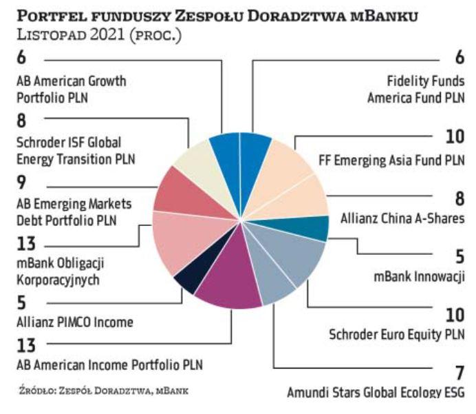 W ubiegłym miesiącu zdecydowana większość funduszy akcji przyniosła zyski. Na Wall Street indeksy wspinały się na nowe rekordy, stąd listę otwierają fundusze akcji rynków rozwiniętych. W niektórych przypadkach, np. w portfelach akcji spółek wzrostowych, najwięksi szczęściarze mogli cieszyć się z dwucyfrowych stóp zwrotu. Świetnie wypadły także fundusze metali szlachetnych. Na przeciwległym biegunie znalazły się obligacje. Szczególnie dotknięte spadkami zostały portfele obligacji długoterminowych, mocniej narażone na zmiany rynkowych stóp procentowych. To właśnie fundusze skarbowe długoterminowe, ze średnią stratą 3,2 proc., kończyły miesiąc na ostatnim miejscu w tabeli produktowej krajowych TFI. Był to efekt rosnących rentowności (spadku cen) papierów skarbowych po podwyżce stóp procentowych w październiku. W listopadzie RPP znów zaskoczyła, jednak tym razem wysokością podwyżki, co sprawiło, że rentowności papierów dziesięcioletnich przebiły na moment okrągły pułap 3 proc. W piątek doszło już do korekty, do około 2,89 proc.