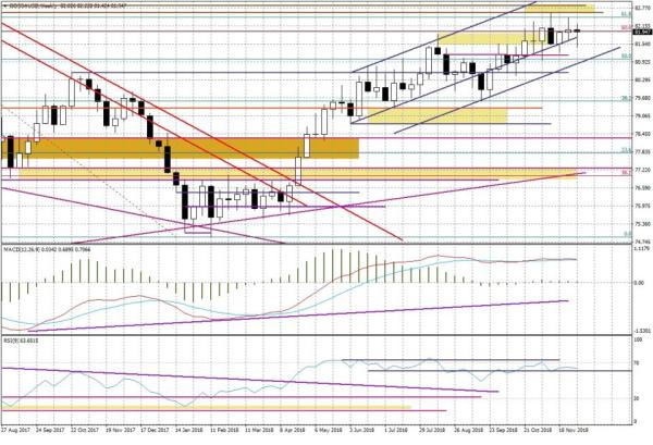 USA / FED: Wall Street Journal podał, że członkowie FED-u podobno rozważają, jak przekazać rynkom komunikat o „gołębiej" podwyżce stóp procentowych na grudniowym posiedzeniu – miałby nastąpić zwrot w stronę podejścia wait&see, czyli pauzy w cyklu i ewentualnej reakcji w kontekście napływających danych makro. Rynek coraz uważniej śledzi też wypowiedzi członków FED – wczoraj Robert Kaplan stwierdził, że trzeba być ostrożnym, gdyż panuje wysoki poziom niepewności, a stopy procentowe są „lekko poniżej poziomu neutralnego", w zbliżonym tonie przemawiał też Raphael Bostic, a dzisiaj nad ranem John Williams przyznał, że „mierzymy się z istotnymi wyzwaniami przez niskie stopy procentowe na świecie", dodając, że „otwarta wojna handlowa byłaby powodem do zmartwień". Z drugiej strony szef FED przemawiając w nocy przed Housing Assistance Council potwórzył formułki o nadzwyczaj silnym rynku pracy, oraz dodał, że gospodarka ma się dość dobrze. To sprawia, że inwestorzy będą koncentrować się na dzisiejszych danych Departamentu Pracy o godz. 14:30. Warto jednak zaznaczyć, że oczekiwania związane z przyszłymi posunięciami FED, gwałtownie spadają. Na niecałe 2 tygodnie przed grudniowym posiedzeniem prawdopodobieństwo podwyżki wg. szacunków Reuters wynosi 78,1 proc., a w przyszłym roku nie jest wyceniana nawet w pełni jedna podwyżka (nieco poniżej 80 proc. szans).
