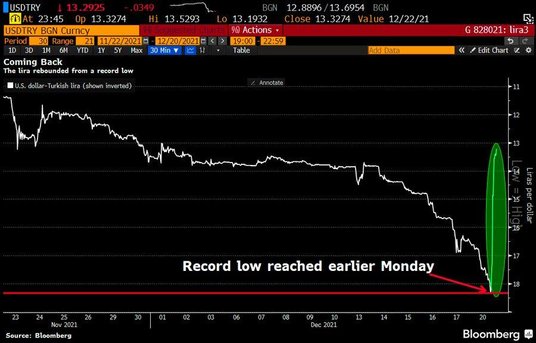 Podczas gdy rząd nazwał ożywienie liry wielką wygraną, ekonomiści nazwali jego program gospodarczy oparty na niskich stopach procentowych lekkomyślnym i powiedzieli, że inflacja – obecnie powyżej 21% – przekroczy w przyszłym roku 30%. Pod presją Erdogana bank centralny od września obniżył stopy procentowe o 500 punktów bazowych.