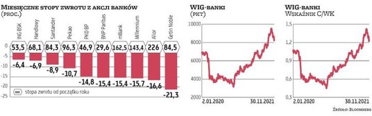 WIG-banki, podobnie jak cały warszawski rynek, ma za sobą kiepski listopad. Wprawdzie na początku miesiąca ustanowił nowy historyczny rekord, ale od tego czasu stracił prawie 13 proc. Warto jednak pamiętać, że w momencie wyznaczania rekordu stopa zwrotu od początku roku sięgała 100 proc. Czy ostatnia słabość banków to tylko korekta?