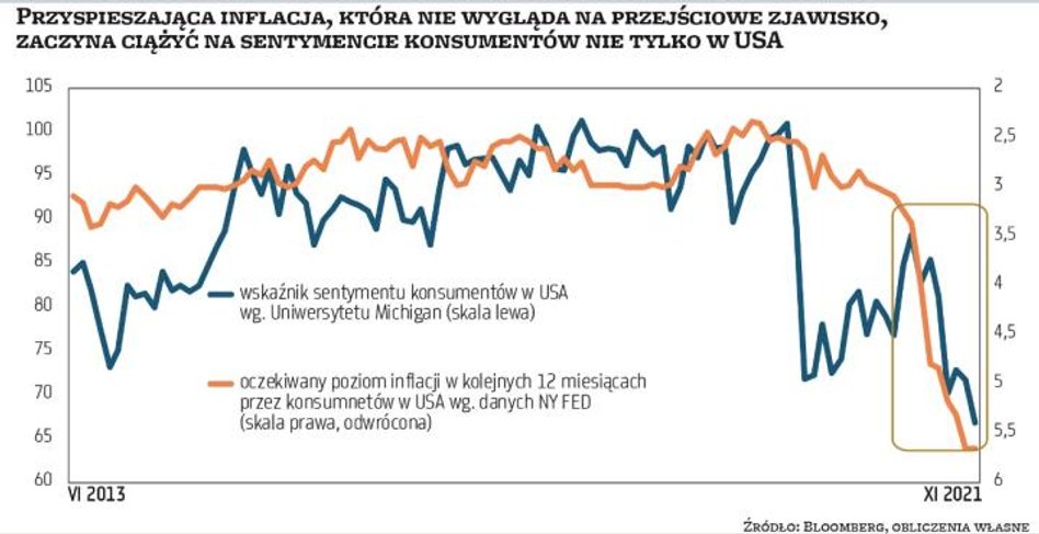 Inflacja, czyli to, co bankom centralnym wydawało się do niedawna przejściowym zjawiskiem, jeszcze bardziej przyśpieszyła, dając się we znaki nie tylko inwestorom, ale też konsumentom na całym świecie. Słowa inflacja i stagflacja odmieniane są przez wszystkie przypadki. Gwałtowny wzrost rentowności krótkoterminowych obligacji stał się rynkowym przejawem spadku zaufania do banków centralnych, zmuszając niektóre z nich do kapitulacji. Na rynkach akcji zapanowała hossa w hossie, podsycana nienasyconą potrzebą spekulacji i strachem przed przepuszczeniem życiowej okazji. Dziś niemal wszystko, od inflacji, przez stopy procentowe po ceny akcji i kryptowaluty ma rosnąć bez ograniczeń, „to the moon".