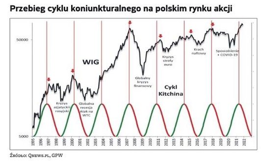 Zauważmy, że jakkolwiek cykl Kitchina nie zawsze potrafił z chirurgiczną precyzją wskazać dokładny termin faktycznego szczytu koniunktury na GPW, to jednak kiedy tak jak obecnie było już po teoretycznym terminie, fala hossy potrafiła się obrócić w tąpnięcie w sposób nagły na zasadzie zwrotu o 180 stopni.