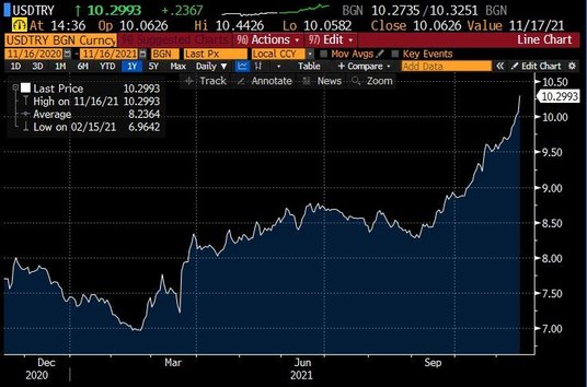 Turecki kryzys walutowy doprowadził w 2018 r. do recesji i późniejszego wzrostu gospodarczego poniżej średniej, który został zaostrzony przez pandemię koronawirusa. Podczas gdy oczekuje się, że gospodarka wzrośnie w tym roku o prawie 10 proc. dzięki silnej produkcji i eksporcie oraz ożywieniu w turystyce, dewaluacja liry podnosi koszty obsługi zadłużenia w walutach obcych przez firmy.
