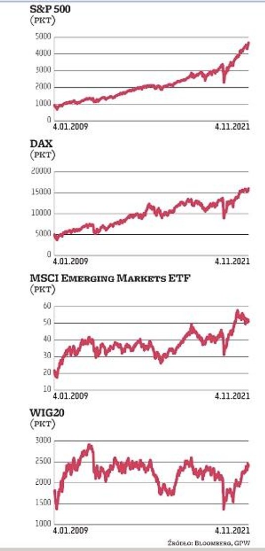 Inwestorzy uważnie obserwujący zmagania banków centralnych z nasilającą się „uporczywą" inflacją, na razie stawiają na giełd, jako środek chroniący kapitał przed erozją i dający nieźle zarobić. Nie niepokoi ich ani zaskakujący zwrot postawy naszej Rady Polityki Pieniężnej, ani spodziewana decyzja Fedu o rozpoczęciu ograniczania skupu aktywów, stanowiąca wstęp do cyklu podwyżek stóp procentowych w Stanach Zjednoczonych. Dane makroekonomiczne są także w polu obserwacji, ale raczej pod kątem działań władz monetarnych, a nie z powodów fundamentalnych. Dewiza, mówiąca że im słabsza gospodarka, tym banki centralne bardziej wstrzemięźliwe w normalizacji swej polityki, wciąż działa. Trudno się dziwić, że w takich warunkach rynek akcji jest preferowaną „przystanią" dla kapitału.