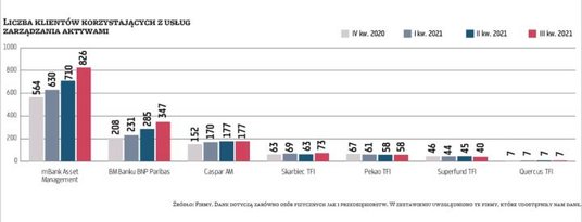 Patrząc na wyniki strategii asset management, czyli portfeli inwestycyjnych dla zamożnych klientów banków, domów maklerskich czy TFI, które prezentujemy na kolejnych stronach, można dojść do wniosku, że ubiegłe 12 miesięcy na rynkach było sielanką. Sytuacja w ciągu ostatnich 12 miesięcy zmieniła się jednak tak mocno, że jesień ubiegłego roku wydaje się już zamierzchłą przeszłością. Jeszcze kilka miesięcy później analitycy nie zakładali, że w 2021 r. dojdzie do silnego wyskoku inflacji. Tymczasem od kilku miesięcy dynamika wzrostu cen pozostaje tematem numer jeden. Zgodnie z najświeższymi danymi GUS-u w październiku inflacja sięgnęła 6,8 proc. W związku z rozpoczęciem cyklu podwyżek stóp procentowych przez RPP ostatnie tygodnie przynoszą dynamiczny wzrost rentowności papierów skarbowych, co podtapia inwestycje w papiery dłużne. Rynki akcji jednak pozostają silne. Amerykański S&P 500 wyznacza nowe szczyty, a krajowe indeksy przeszły w ostatnich tygodniach w fazę korekty po miesiącach zwyżek. – Na GPW zakończyliśmy III kwartał blisko tegorocznych maksimów, jeśli chodzi o główne indeksy. Warto też odnotować, że sam wrzesień przyniósł dość płaskie odczyty dla krajowych indeksów akcji, w odróżnieniu od tego, co działo się na rynkach zagranicznych, gdzie zdecydowanie dominował kolor czerwony. Początek IV kwartału jest nadal udany dla rynku akcji i cały czas lokomotywą wzrostów są banki – komentuje Maciej Bobrowski, dyrektor wydziału zarządzania portfelami inwestycyjnymi w Domu Maklerskim BDM. – Zatem wiele kwestii układa się w scenariusz, że bieżący rok będzie pierwszym po bardzo wielu latach, kiedy inwestorzy na GPW będą mogli z zadowoleniem odczuć względną siłę warszawskiego parkietu wobec rynków zagranicznych – zauważa Bobrowski. W ocenie eksperta DM BDM w krótkim terminie rynek jest mocno rozgrzany i grudniowe zamknięcie WIG wcale nie musi wypaść powyżej obecnych odczytów, jeśli banki nie będą nadal lokomotywą wzrostów. – Jest coraz mniej miejsca na podnoszenie prognoz w kolejnych dwóch kwartałach wynikowych. Wręcz dostrzegamy (jeszcze nie na szerokiej grupie) pierwsze sygnały, że wyjątkowy optymizm z I połowy roku stworzył zbyt ambitne oczekiwania dla przyszłych wyników. Niemniej należy podkreślić, że jesteśmy w trakcie roku kalendarzowego, który przyniesie bardzo solidne wyniki dla większości sektorów czy branż – podsumowuje Bobrowski.