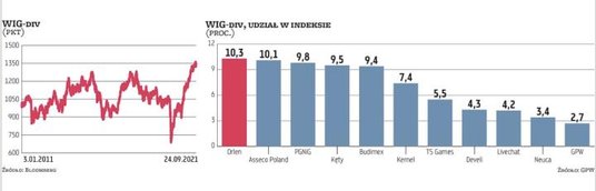 Na drugiej lokacie jest Orange Polska, który przez kilkanaście lat wypłacił w sumie 17,8 mld zł dywidend, co stanowi 175 proc. bieżącej kapitalizacji. Wysoko są też Bogdanka (1,1 mld zł, 83 proc.) i PGE (12,9 mld zł i 76 proc.). Te trzy przykłady pokazują jednak, że zdolność do wypłaty dywidend, szczególnie bardzo wysokich, nie jest dana raz na zawsze. Orange Polska i PGE podzieliły się zyskiem ostatnio w 2016 r., Bogdanka zaś w 2019 r. Pogorszenie wyników i wstrzymanie dywidend przełożyło się na duży spadek wartości rynkowej, co podbiło nasz wskaźnik. To zjawisko, które dotyczy niemal wszystkich firm energetycznych i węglowych na GPW (w tym m.in. JSW, Enei i Tauronu). To pokazuje, że dywidendowa przeszłość nie jest gwarancją podtrzymania tej passy w przyszłości – pokazuje to także systematycznie malejąca w ostatnich latach liczba firm zaliczanych do indeksu WIG-div.