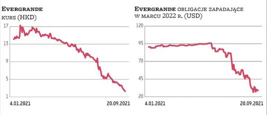 Rosną obawy o niewypłacalność Evergrande, jednego z największych deweloperów w Chinach. Jeśli rząd w Pekinie pozwoliłby na upadek giganta, mogłoby to wywołać efekt domina. Zdaniem niektórych analityków w sektorze nieruchomości może wybuchnąć kryzys, który odbiłby się na drugiej co do wielkości gospodarce świata.