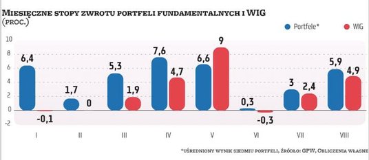 WIG od początku tego roku zyskał już ponad 25 proc. Korzystając z dobrej koniunktury, dzięki odpowiedniej selekcji spółek można było wypracować znacznie lepszy wynik, czego potwierdzeniem są stopy zwrotu biur maklerskich biorących udział w naszej rywalizacji portfeli fundamentalnych. Po ośmiu miesiącach zmagań z rynkiem portfele ekspertów mogą się pochwalić dodatnią uśrednioną stopą zwrotu na poziomie 44 proc. Najlepszy z portfeli, zarządzany przez analityków Millennium DM, wypracował aż 90 proc. zysku.
