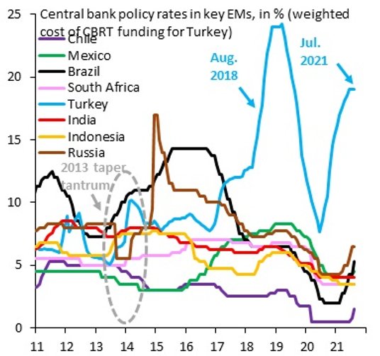 Niedawno Bank Centralny Sri Lanki (CBSL) jako pierwszy w Azji podniósł stopy procentowe od początku pandemii, działając w celu powstrzymania presji inflacyjnej i wysokiego importu, jednego z czynników, które przyczyniły się do 8-proc. deprecjacji rupii w tym roku. Na początku sierpnia o 100 pb podniósł stopy brazylijski bank centralny