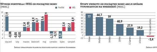 Ubiegły miesiąc dla większości uczestników portfela technicznego „Parkietu" był udany, co nie jest większym zaskoczeniem, gdyż sierpień sprzyjał inwestycjom na GPW. WIG, indeks szerokiego rynku, zyskał w tym czasie blisko 5 proc., co było drugim po maju najlepszym wynikiem w tym roku. Za tak dobrym wynikiem stały m.in. duże spółki. Napędzany przez banki WIG20 zyskał w zeszłym miesiącu ponad 5 proc. Świetny wynik wypracował także mWIG40, który zyskał blisko 6 proc., z kolei sWIG80 urósł o 1,9 proc.