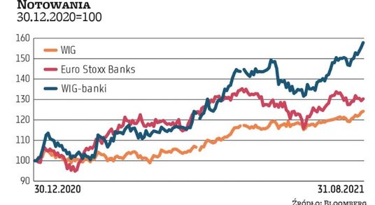 Powiedzenie, że bez banków nie ma hossy, często sprawdza się dlatego, że banki to branża procykliczna, zyskująca w czasie dobrej koniunktury gospodarczej. Jednak na GPW przez lata wpływ banków na rynek był dodatkowo wzmocniony przez wielką ich kapitalizację i wagę w indeksach. Od początku roku do teraz 11 polskich banków zaliczanych do WIG-banki zwiększyło łączną kapitalizację o 54 proc. (pominęliśmy notowane na zasadzie dual listingu Santandera i UniCredit, które są wielkie pod względem kapitalizacji, ale mają niewielki wpływ na indeks). To oznacza wzrost wartości rynkowej aż o 65 mld zł i obecnie analizowana „jedenastka" jest warta w sumie już 186,7 mld zł. MR