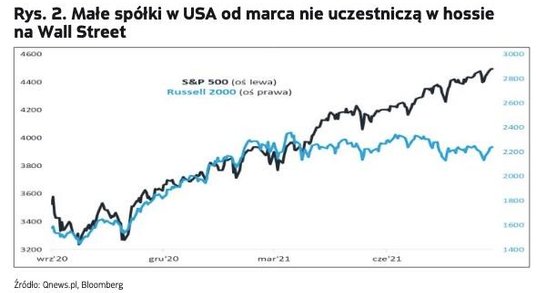 Jednocześnie jednak bardziej wnikliwy przegląd sytuacji pokazuje, że w cieniu rekordów S&P 500 czy WIG-u część monitorowanych przez nas innych ryzykownych aktywów nie odnosi wcale porównywalnych triumfów. Poddały się przedłużającej się zadyszce lub nawet korekcie spadkowej. W języku analizy technicznej oznacza to, że powstały tzw. dywergencje (rozbieżności) między tymi pozostającymi coraz bardziej w tyle aktywami a bijącym rekordy flagowym indeksem Wall Street. Prześledźmy je po kolei.