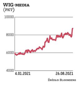 Również dobre zachowanie walorów jednej spółki wystarczyło, aby indeks WIG-media wzrósł w tym roku o 46 proc. Mowa o Wirtualnej Polsce, która ma największy udział w indeksie. Zysk netto przypadający akcjonariuszom jednostki dominującej Wirtualnej Polski w II kwartale wyniósł 41,1 mln zł, wobec 7,1 mln zł rok wcześniej. Jak tłumaczą analitycy, rynek reklamy będzie rósł, co powinno wspierać wyniki spółki również w kolejnych okresach.
