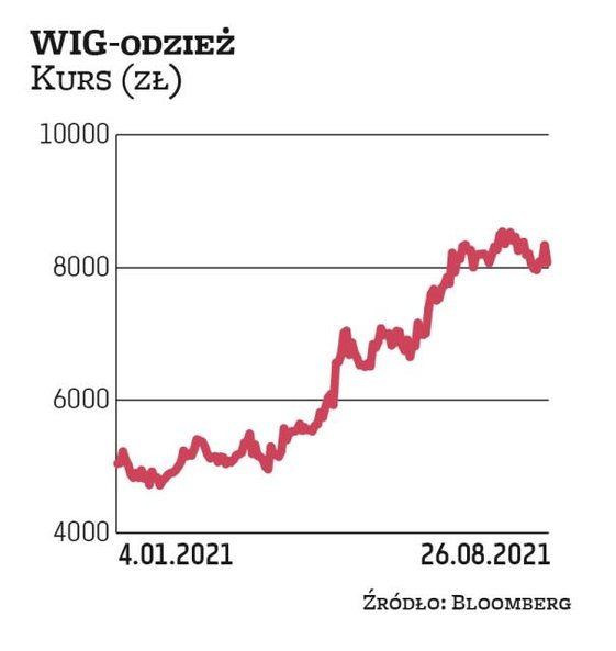 WIG-odzież jest w tym roku jednym z najlepszych indeksów sektorowych pod względem stopy zwrotu. Od początku roku notowania wzrosły już o około 55 proc. Wynika to z bardzo dobrego zachowania kursów LPP (ponad 71-proc. udział w indeksie) oraz CCC (22-proc. udział w indeksie). Wzrost kursu LPP wynika z bardzo dobrych wyników finansowych generowanych pomimo pandemii, perspektyw dalszego wzrostu oraz bardzo silnej i bezpiecznej sytuacji bilansowej. W przypadku CCC wzrost kursu jest wynikiem wiary inwestorów w to, że tradycyjna część biznesu CCC będzie w stanie wrócić z wynikami do czasów sprzed pandemii. Moim zdaniem to jest wciąż bardzo ambitne zadanie. Jeśli chodzi o perspektywy dla indeksu WIG-odzież, to uważam, że większość dobrych informacji jest już odzwierciedlonych w cenach, tak więc nie widzę za bardzo miejsca do kontynuacji trendu wzrostowego. dos