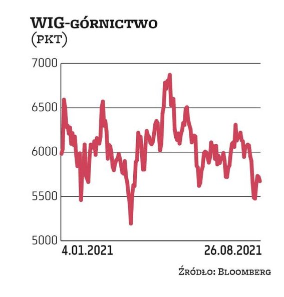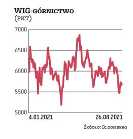 Indeksem, który w tym roku również znajduje się na końcu tabeli, jest WIG-górnictwo. Benchmark zyskał symboliczny 1 proc. WIG-górnictwo zdominowane jest jednak przez KGHM, którego walory od szczytu w maju staniały już o około 20 proc. Korekta odbywała się równocześnie ze spadkami na rynku miedzi, która od maja staniała o około 10 proc. Zdaniem analityków lepsze perspektywy, przynajmniej w krótkim terminie, ma JSW. Węgiel koksujący, który wydobywa spółka, mocno drożeje, co będzie prowadzić do bardzo dobrych wyników w obecnym kwartale. Dzięki temu przynajmniej krótkoterminowo notowania JSW mogą radzić sobie lepiej niż KGHM.