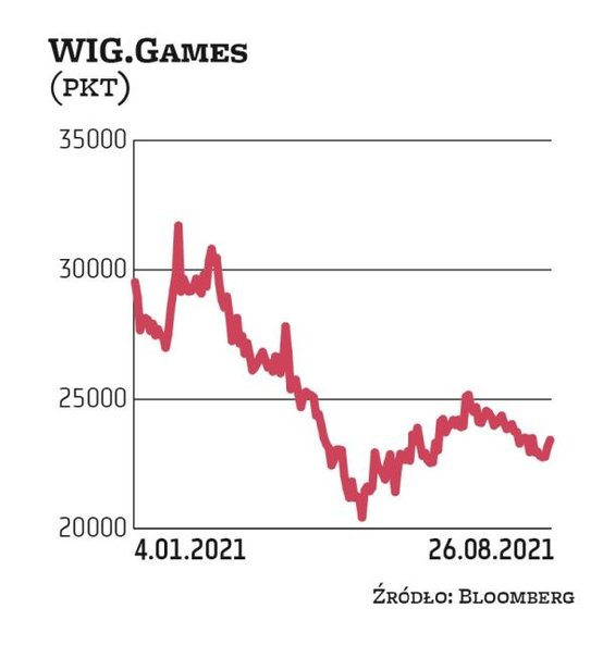 W WIG.Games CD Projekt ma obecnie ponad 37-proc. udział, a tegoroczne spadki indeksu to m.in. pokłosie mocnej przeceny akcji tej spółki po rozczarowującej premierze „Cyberpunka 2077". Niedługo poznamy raport CD Projektu za II kw., patrząc jednak przez pryzmat statystyk „CP2077" w minionym kwartale, nie spodziewamy się, żeby nadchodzące wyniki mogły budzić optymizm. Ważna dla CDR będzie końcówka roku, kiedy „Cyberpunk" będzie miał premierę na konsolach nowej generacji, a Netflix wypuści nowy sezon „Wiedźmina". Warto też zwrócić uwagę na takie spółki jak TSG (wicelider indeksu, którego notowania zaczęły odbijać w połowie maja) – w kontekście możliwego przejęcia – czy 11 bit studios, który mocno stracił po zapowiedzi „Frostpunka 2", co jest niezrozumiałą reakcją rynku, patrząc na to, jak gra dynamicznie się pnie na top wishlistach. No i PlayWay, który ma za sobą udaną premierę „Car Mechanic Simulator 2021" i kilka kolejnych ważnych debiutów w nadchodzącym czasie (np. „Bum Simulator"). dos