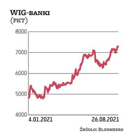 Ulubieńcami inwestorów w tym roku są m.in. banki. To one z uwagi na swoją wagę pomagały rosnąć największym indeksom. Dobrą koniunkturę w sektorze bankowym świetnie widać po wynikach lidera rodzimego rynku. Zysk netto grupy PKO BP w II kwartale wzrósł do 1,236 mld zł, wobec 803 mln zł rok wcześniej. Przedstawiciele banku informowali niedawno, że PKO BP będzie mógł w 2022 r. wypłacić dywidendę. Walory PKO BP zdrożały już w tym roku o ponad 40 proc.