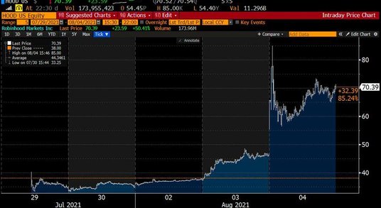 Odzywają się echa sagi GameStop z marca, w której użytkownicy platformy mediów społecznościowych Reddit kupowali akcje firmy, aby podnieść cenę. Robinhood był zdecydowanie najczęściej wymieniany w ciągu ostatnich 24 godzin na WallStreetBets, wątku Reddit od czasu rajdu GameStop, według firmy badawczej SwaggyStocks. Tymczasem handel detaliczny akcjami Robinhood wzrósł we wtorek dziesięciokrotnie, według Vanda Research.