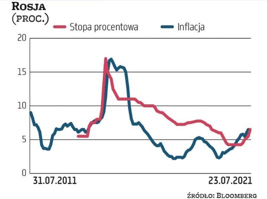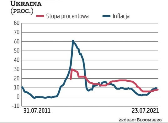 Z jeszcze większym zaskoczeniem inwestorzy mieli do czynienia w przypadku decyzji władz monetarnych na Ukrainie. O ile w Rosji ekonomiści oczekiwali wzrostu stóp, ale w mniejszej skali, to w Kijowie oczekiwania analityków całkowicie rozminęły się z faktycznymi decyzjami. W czerwcu, gdy oczekiwano podwyżki po wzroście majowej inflacji do 9,5 proc., bankierzy centralni pozostawili koszt pieniądza bez zmian. Z kolei podczas lipcowego posiedzenia analitycy nie oczekiwali żadnego ruchu, a władza pieniężna zdecydowała się na wzrost głównej stopy procentowej o 50 pkt baz., do 8 proc. Bank Ukrainy wskazał, że w krótkim terminie inflacja może wzrosnąć nawet powyżej 10 proc. Jest to druga pod względem wielkości dynamika wzrostu cen w Europie po Turcji. W związku z tymi prognozami bankierzy centralni są gotowi do podwyżki stopy referencyjnej do 8,5 proc. i utrzymania jej na tym poziomie do drugiego kwartału przyszłego roku, kiedy to inflacja miałaby wrócić w okolice celu inflacyjnego na poziomie 5 proc.