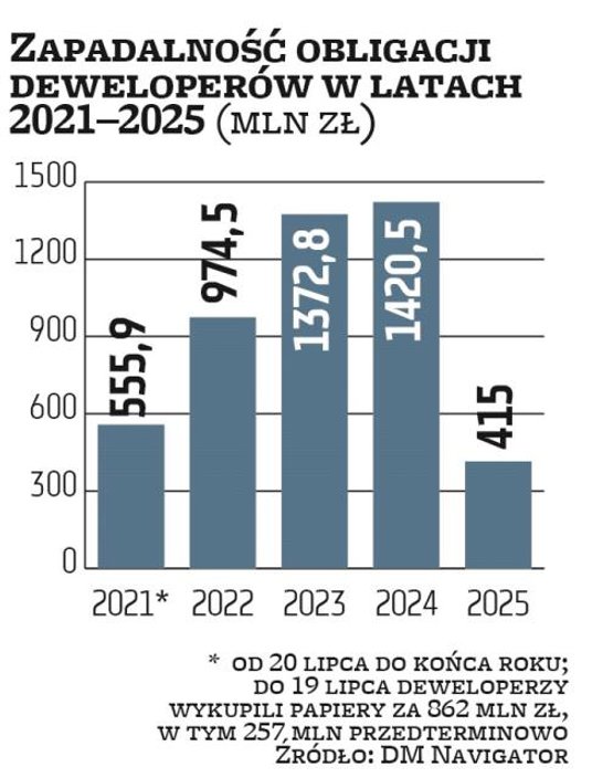 Z jednej strony deweloperzy pozyskali w I półroczu znaczny kapitał, a z drugiej wykupili obligacje za 862 mln zł (z czego 509 mln zł w II kwartale). W tej kwocie 257 mln zł to nabycie papierów przed terminem zapadalności. – Przedterminowe wykupy były w większości związane z optymalizacją struktury zapadalności kolejnych serii, w celu wydłużenia okresu średniej zapadalności zobowiązań. To pozytywnie wpływa na elastyczność emitentów w planowaniu kolejnych posunięć inwestycyjnych – wskazuje Mucha.