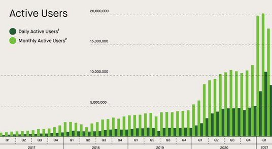 Robinhood zarabia tym więcej pieniędzy, im więcej handlują jego klienci. Liczba rachunków zasilonych na platformie wzrosła z 5,1 mln na koniec 2019 roku do 12,5 mln na koniec ubiegłego roku i ponownie wzrosła do 18 mln na koniec marca. Najbardziej lukratywną grupą inwestorów wymienionych w prospekcie są ci, którzy dołączyli w 2020 r. – zdeponowali oni na platformie 45 proc. Środków.