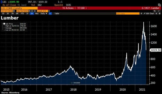 Tak szybki spadek sugeruje pęknięcie bańki i rodzi pytanie, jak nisko spadną ceny drewna. Nawet po spadku, kontrakty terminowe na tarcicę pozostają prawie trzykrotnie wyższe niż typowe dla tej pory roku. Producenci i handlowcy tarcicy oczekują, że ceny pozostaną stosunkowo wysokie ze względu na silny rynek mieszkaniowy, ale wąskie gardła podażowe i szaleńcze zakupy, które charakteryzowały ponowne otwarcie i spowodowały wzrost cen do wielokrotności najwyższych w historii, zmniejszają się.