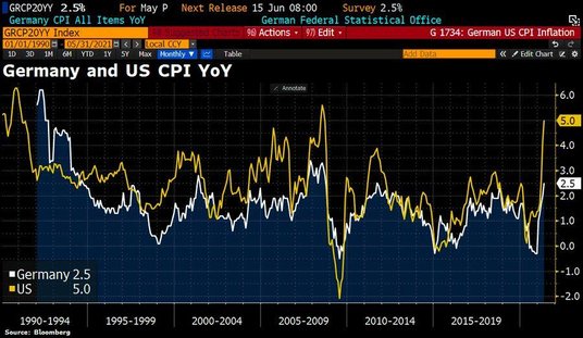 Ale uczestnicy rynku generalnie nie spodziewają się, że Fed zareaguje na najnowsze dane podczas posiedzenia Federalnego Komitetu Otwartego Rynku w przyszłym tygodniu. Analitycy wskazują przede wszystkim na nowe założenia Fed, według których będzie tolerować wyższą inflację w imię pełnego i integracyjnego ożywienia. DB twierdzi, że zamiar Fedu, aby nie zaostrzać polityki, dopóki inflacja nie pokaże trwałego wzrostu, będzie miał tragiczne skutki.