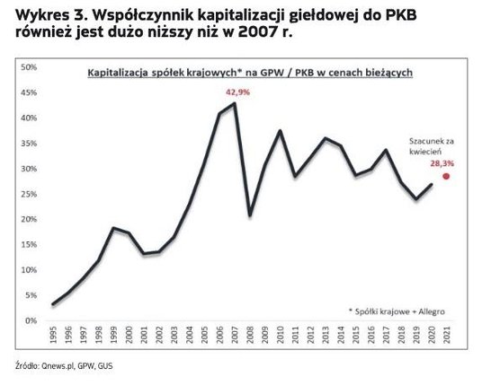 Perspektywa „rozprawienia się" z rekordem sprzed lat to z jednej strony okazja do świętowania, a z drugiej pewien powód do... narzekania. Dlaczego? Bo skoro po blisko 14 latach WIG jest ciągle w tym samym punkcie, to można się zastanawiać, jaki sens ma długoterminowe inwestowanie na GPW. A przecież przez ten długi czas wartość nabywczą kapitału pożerała inflacja – od szczytu WIG z 2007 r. skumulowany wzrost cen towarów i usług konsumpcyjnych w polskiej gospodarce sięgnął prawie 40 proc. Oznacza to, że w ujęciu realnym (po skorygowaniu o inflację) inwestycja w WIG w połowie 2007 r. przyniosłaby do tej pory głębokie straty.