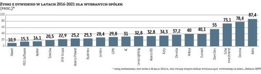 Ponadprzeciętnie wysokie dywidendy mogą zapewnić akcje deweloperów. W ich wypadku dwucyfrowe stopy wypłaty nie należą do rzadkości. Dla wielu z nich ostatnie lata były rekordowe pod względem wyników, a wiele wskazuje, że dobra koniunktura na rynku mieszkaniowym szybko się nie skończy. – Generalnie cała ta branża powinna dzielić się zyskiem w najbliższych latach. Natomiast wydaje się, że pod względem atrakcyjności dywidend prym będą wieść dwie największe spółki, czyli Dom Development i Atal. Warszawski deweloper w każdym kolejnym roku poprawia wskaźnik zysku na akcję, co bezpośrednio przekłada się na rosnącą stopę dywidendy, i kolejne lata nie powinny przynieść zmiany tego trendu. Spodziewamy się więc, że spółka co roku może zaoferować inwestorom wysoką, jednocyfrową stopę dywidendy. Nie inaczej może być w przypadku Atalu. Cieszyński deweloper w swojej polityce dywidendowej zapisał, że co roku planuje wypłacać pomiędzy 70 a 100 proc. skonsolidowanego zysku netto przypadającego akcjonariuszom jednostki dominującej. Biorąc pod uwagę fakt, że spółka powinna w tym roku zauważalnie poprawić wyniki (względem roku ubiegłego), a kolejne lata powinny przynieść dalszą sukcesywną ekspansję na poziomie zysku netto, można oczekiwać, że i stopa dywidendy pozostanie atrakcyjna w każdym roku – uważa David Sharma, analityk Trigon DM.