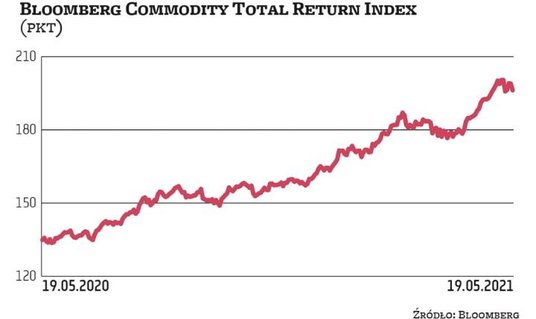 Odradzający się popyt oraz problemy z podażą sprawiły, że ceny znacząco odbiły, odrabiając często z nawiązką straty wywołane koronawirusową paniką sprzed roku. Zwyżkują ceny zarówno metali przemysłowych, jak i surowców energetycznych czy rolnych. Indeks surowcowy Bloomberg Commodity zyskał od początku roku blisko 20 proc., a w okresie ostatnich 12 miesięcy prawie 50 proc. i w ostatnich dniach znalazł się najwyżej od prawie trzech lat. Zwyżki cen wielu surowców wypadają jednak dużo bardziej okazale. Ropa Brent notowana w Londynie w ciągu roku podrożała o prawie 95 proc., choć w ostatnich tygodniach zwyżki wyraźnie wyhamowały. Efektowne zwyżki nie ominęły notowań metali przemysłowych. Cena aluminium jest obecnie o prawie 70 proc. wyższa niż rok temu. Z kolei miedź poszybowała w górę o blisko 100 proc. Zwyżki są napędzane przez inflację, deprecjację dolara i oczekiwania związane z odbiciem globalnej gospodarki po wygaszeniu pandemii. Z przewidywań ekspertów wynika, że obecny trend na rynku surowców będzie kontynuowany. Najnowsza prognoza Banku Światowego zakłada, że średnie ceny metali będą w tym roku o 30 proc. wyższe niż w 2020 r. Prognozowany wzrost ceny aluminium, napędzany w dużej mierze ożywieniem w przemyśle motoryzacyjnym, wynosi 29 proc. W przypadku miedzi, gdzie istotną rolę odgrywa popyt Chin, spodziewany jest wzrost na poziomie 38 proc. Zwyżki są także przewidywane dla pozostałych metali wykorzystywanych w przemyśle, jak cyna, nikiel czy cynk. Analitycy nie spodziewają się dalszego wzrostu cen ropy z uwagi na wystarczającą podaż surowca na rynku. jim