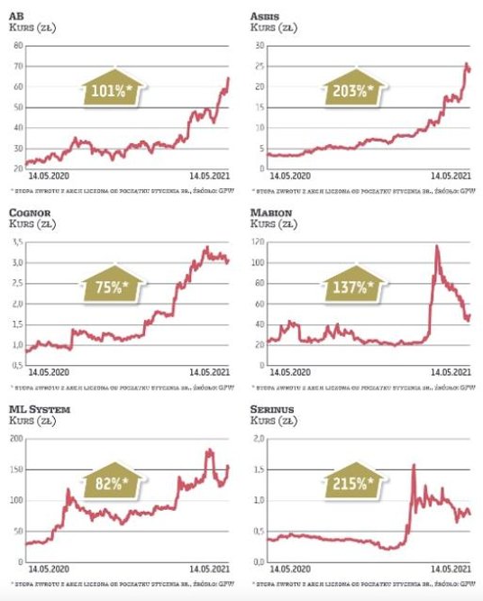 Dobra passa małych spółek tworzących indeks sWIG80 zdaje się nie mieć końca. Po tym jak w całym ubiegłym roku wskaźnik zyskał 34 proc., w ciągu nieco ponad czterech tegorocznych miesięcy dołożył już kolejne 25 proc. W ostatnich dniach indeks ten z marszu pokonał barierę 20 tys. pkt. Tak wysoko jak obecnie nie był notowany od szczytów funduszowej hossy z 2007 roku (21,9 tys. pkt). Warto zauważyć, że tegoroczna fala wzrostowa w tym segmencie objęła swym zasięgiem aż ponad 90 proc. uczestników indeksu, podczas gdy w przypadku dużych i średnich firm na zwyżki załapało się odpowiednio 80 i 75 proc. spółek. Które spółki najmocniej na tym skorzystały?