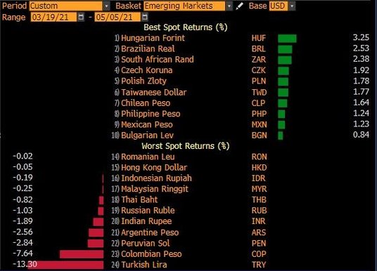 - Turecka lira może testować dołki w tym roku ze względu na przyspieszającą inflację, spadki techniczne i utratę niezależności banku centralnego - powiedział Slobodan Drvenica, kierownik ds. badań w firmie Windsor Brokers, specjalizującej się w handlu walutami i instrumentami pochodnymi. - Turecki bank centralny nie jest w stanie przyjąć konwencjonalnych środków w celu zwalczania inflacji, ponieważ prezesi, którzy podnieśli stopy procentowe, zostali szybko odwołani - podkreśla Drvenica.