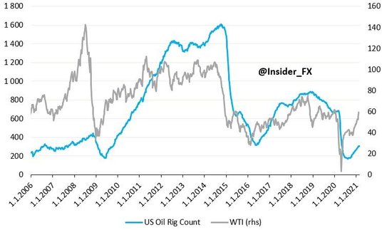 Amerykańska Agencja Informacji Energetycznej ( Energy Information Administration - EIA) i Standard Chartered podniosły w tym tygodniu swoje prognozy cen ropy na 2021 rok. Zgodnie z marcowym krótkoterminowym prognozą energetyczną (STEO), według EIA ceny spot Brent wynoszą średnio 60,67 USD za baryłkę, a ceny spot WTI średnio 57,24 USD za baryłkę w tym roku. W swoim lutowym STEO, EIA przewidywała, że ??ceny spot Brent wyniosą średnio 53,20 USD za baryłkę, a ceny spot WTI średnio 50,21 USD za baryłkę w 2021 r. Standard Chartered podkreślił, że podniósł swoje średnie prognozy cen ropy Brent i WTI w 2021 r. O 14 USD za baryłkę do odpowiednio 65 USD za baryłkę i 63 USD za baryłkę.