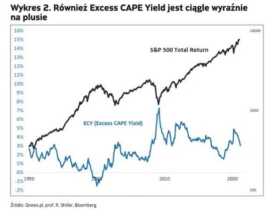 Reasumując, ponieważ wysokie wyceny amerykańskich akcji (prognozowany P/E rzędu 21, CAPE rzędu 35) tłumaczone są od miesięcy niskim poziomem rentowności obligacji skarbowych, to nie powinno dziwić, że wzrost owej rentowności powinien wywołać dostosowanie tych wycen w dół. Ale jest to proces z natury stopniowy – jeżeli nie dojdzie do szokowego wzrostu rentowności, reakcja rynku akcji powinna być stonowana.