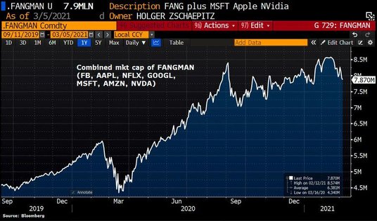 FANGMAN jest kolejnym akronimem, który szturmem podbija świat inwestycji, po FANG, FAANG i MAGA. Łączna kapitalizacja rynkowa tych akcji nawet po spadkach przekracza 7 bln USD, co stanowi około 25 [rpc. całkowitej kapitalizacji rynkowej spółek z indeksu S&P 500. Łączna kapitalizacja rynkowa tych siedmiu akcji przewyższa PKB Japonii, Niemiec czy Indii, które są odpowiednio trzecią, czwartą i piątą co do wielkości gospodarką świata.