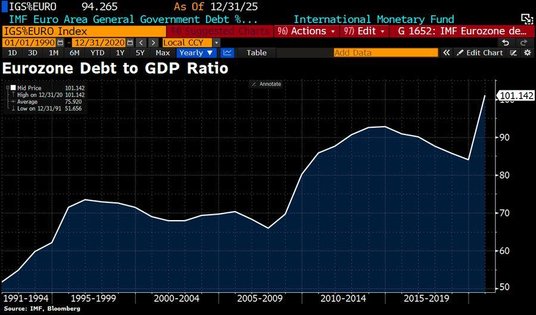 Wskaźnik zadłużenia strefy euro do PKB przekroczył 100 proc. Komisja Europejska przedstawi prawdopodobnie w środę nowe parametry przy podejmowaniu decyzji o przejęciu lub przedłużeniu zawieszenia limitów wydatków UE w maju. Decyzja zapadła rok po tym, jak komisja po raz pierwszy uchyliła przepisy, ponieważ rządy starały się złagodzić cios pandemii nadzwyczajnym poziomem wsparcia. Rezolucja o wstrzymaniu się z przywróceniem zasad jest kolejnym sygnałem, że państwa UE będą prawdopodobnie decydować się na stopniowe podejście do wycofywania takiego wsparcia, mimo że finanse publiczne ogólnie się pogorszyły.
