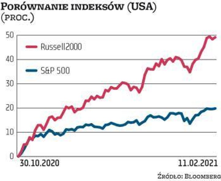 Dobra forma małych spółek z warszawskiej giełdy wpisuje się w szerszy, ogólnoświatowy trend, który jest wyraźnie widoczny od kilku miesięcy na rozwiniętych rynkach akcji. Tylko od początku tego roku amerykański indeks Russell 2000, który skupia spółki o małej kapitalizacji, zyskał 16 proc., ustanawiając w ostatnich dniach kolejne rekordy notowań. Dla porównania w całym 2020 r. indeks ten urósł o 18 proc., co w dużej mierze było efektem bardzo udanej końcówki roku. Małe spółki znalazły się na celownikach amerykańskich inwestorów, gdy na przełomie października i listopada pojawiły się pierwsze informacje o pozytywnych wynikach badań nt. skuteczności szczepionek na Covid-19. To sprawiło, że inwestorzy rozpoczęli grę pod oczekiwane odbicie w gospodarce, co przełożyło się na napływ świeżego kapitału do mniejszych spółek. Wiele z nich funkcjonuje bowiem w cyklicznych branżach. W efekcie Russell 2000 od października 2020 r. zwyżkował o prawie 50 proc. Dla porównania indeks skupiający największe amerykańskie firmy S&P 500 zyskał jedynie 19 proc. Dobra passa małych spółek w ostatnich miesiącach była również kontynuowana na europejskich giełdach. Niemieckie indeksy DAX i mDAX zyskały od końca października odpowiednio 21 i 26 proc., pod czas gdy sDAX w tym czasie poszybował w górę o prawie 35 proc. Zainteresowanie inwestorów małymi spółkami utrzymuje się także na londyńskiej giełdzie. Indeks FTSE SmallCap zwyżkował od początku listopada 2020 r. o ponad 27 proc., ustanawiając nowy historyczny szczyt notowań. Dla porównania indeks FTSE 100 wzrósł w tym czasie tylko o około 17 proc. i nadal nie zdołał odrobić wszystkich strat, jakie poniósł podczas koronawirusowej paniki z wiosny 2020 r. Do poziomu sprzed roku brakuje mu jeszcze około 15 proc. JIM