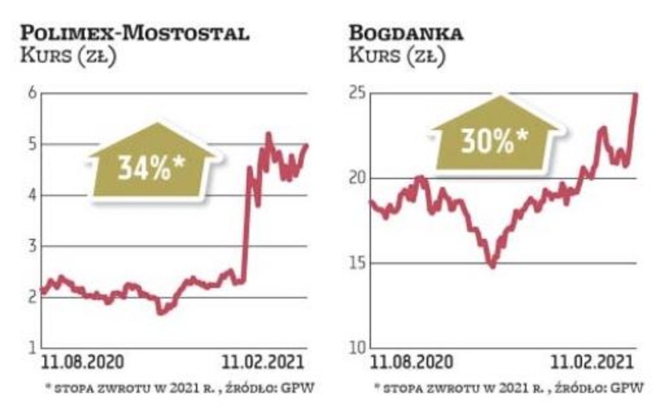 Tegorocznym odkryciem wśród małych firm jest Bogdanka, która w tym roku ma spore szansę podnieść się po fatalnym 2020 roku, gdy jej zyski spadły o 88 proc. rok do roku. – Perspektywa roku 2021 jest dużo bardziej optymistyczna, co wynika ze spodziewanego wzrostu popytu na węgiel z sektora energetycznego o 7–12 proc. r./r. – wskazuje Tomasz Duda, analityk Erste Securities. To efekt m.in. wzrostu popytu na energię elektryczną. Ponadto rosnące ceny zagranicznego węgla spowodowały, że obecnie polski węgiel jest tańszy, co może skutkować wyższym eksportem.