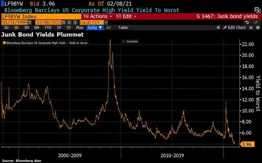 Rentowności na emisjach z klasami CCC, powszechnie uważanymi za skrajnie ryzykowne, osiągnęły w poniedziałek rekordowo niski poziom 6,21 proc. i przez trzy miesiące z rzędu radziły sobie lepiej niż reszta rynku.
