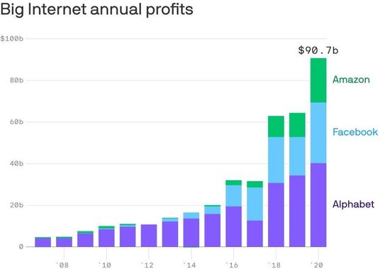 Cyfrowe imperium reklamowe Google nabiera tempa, które utraciło na wczesnych etapach pandemii, gdy jego usługa wideo YouTube staje się głównym magnesem marketingowym, a inne firmy coraz częściej angażują się w promocje mające na celu skupienie się na klientach, którzy mają pieniądze do wydania. Alphabet zarobił 15,2 miliarda dolarów przy przychodach w wysokości 56,9 miliardów dolarów w okresie październik-grudzień, co z łatwością przekroczyło prognozy analityków z Wall Street. Firma z Mountain View w Kalifornii ujawniła również, że zmiana w rozliczaniu serwerów komputerowych Google i innego sprzętu trwającego dłużej niż oczekiwano może podnieść jej wyniki operacyjne w tym roku nawet o 2,1 miliarda USD.