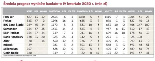 Dziesięć największych banków z GPW miało w IV kwartale 2020 r. łącznie 1,46 mld zł zysku netto, czyli mniej o 43 proc. zarówno niż rok wcześniej, jak i w III kwartale – wynika ze średniej prognoz zebranych od domów maklerskich przez „Parkiet".