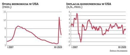 Gdy w styczniu 2017 r. Donald Trump obejmował władzę w USA, stopa bezrobocia wynosiła 4,7 proc. W lutym 2020 r. sięgała zaledwie 3,5 proc. i była najniższa od ponad pół wieku. Później przyszła pandemia i przerwała gospodarczą prosperity. W kwietniu 2020 r. stopa bezrobocia w USA doszła do 14,7 proc. Do grudnia spadła jednak do 6,7 proc. Na pierwszy rzut oka sytuacja nie wygląda więc tak źle jak podczas poprzedniego kryzysu. Gdy w styczniu 2009 r. Barack Obama zostawał prezydentem, a Joe Biden wiceprezydentem, stopa bezrobocia wynosiła 7,8 proc., by do września 2009 r. dojść do 9,8 proc. Obecnie jest na podobnym poziomie jak w marcu 2014 r., czyli w czasach uznawanych za ożywienie gospodarcze. Może jednak znów mocno skoczyć, jeśli lockdowny będą się przedłużać, a pomoc dla spółek okaże się niewystarczająca.
