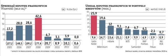 Czy klienci będą skłonni zaakceptować propozycje banków? – Diabeł tkwi w szczegółach. Ugoda może być atrakcyjną opcją dla tych, którzy z różnych powodów nie chcą wchodzić na drogę sądową, np. są nie do końca przekonani, czy wygrają, nie chcą angażować pieniędzy, czasu i życiowej energii na wieloletni spór sądowy. Jeśli mogliby dogadać się z bankami w prosty, tani i szybki sposób, a warunki byłyby jasne, to takie ugody byłyby dla nich dobrym rozwiązaniem. Pod względem finansowym nie byłaby to jednak oferta atrakcyjna dla wszystkich. Im bardziej kurs z dnia udzielenia różni się od obecnego, tym więcej klient skorzysta z przewalutowania, a im dłuższy okres kredytowania, tym więcej będzie musiał „dopłacić" z powodu różnicy w oprocentowaniu. Dlatego najbardziej zainteresowani powinni być biorący kredyty w latach 200–2008, gdy kurs franka był najniższy. To powoduje, że wielu klientów zaciągających kredyty w innych latach, gdy kurs był wyższy i dla których zysk z przewalutowania byłby zbliżony do straty z przeliczenia różnicy w wysokości rat, nie pójdzie na ugody. Dla nich zostanie tylko liczenie na unieważnienie kredytu i brak opłaty za korzystanie z kapitału – mówi Andrzej Powierża, analityk DM Citi Handlowego. W latach 2007–2008 kurs franka obniżył się w okolice 2,2 zł, a nawet 2 zł. Na początku 2009 r. przekroczył już 3 zł, a dzisiaj wynosi 4,14 zł.