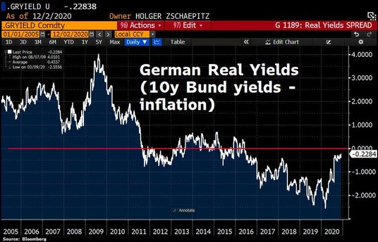 Zarówno niemieckie, jak i włoskie dziesięcioletnie obligacje miały największy dzienny skok od 9 listopada, kiedy to wiadomość o szczepionce Pfizera na Copvid-19 wywołała największą wyprzedaż niemieckich obligacji od marca.