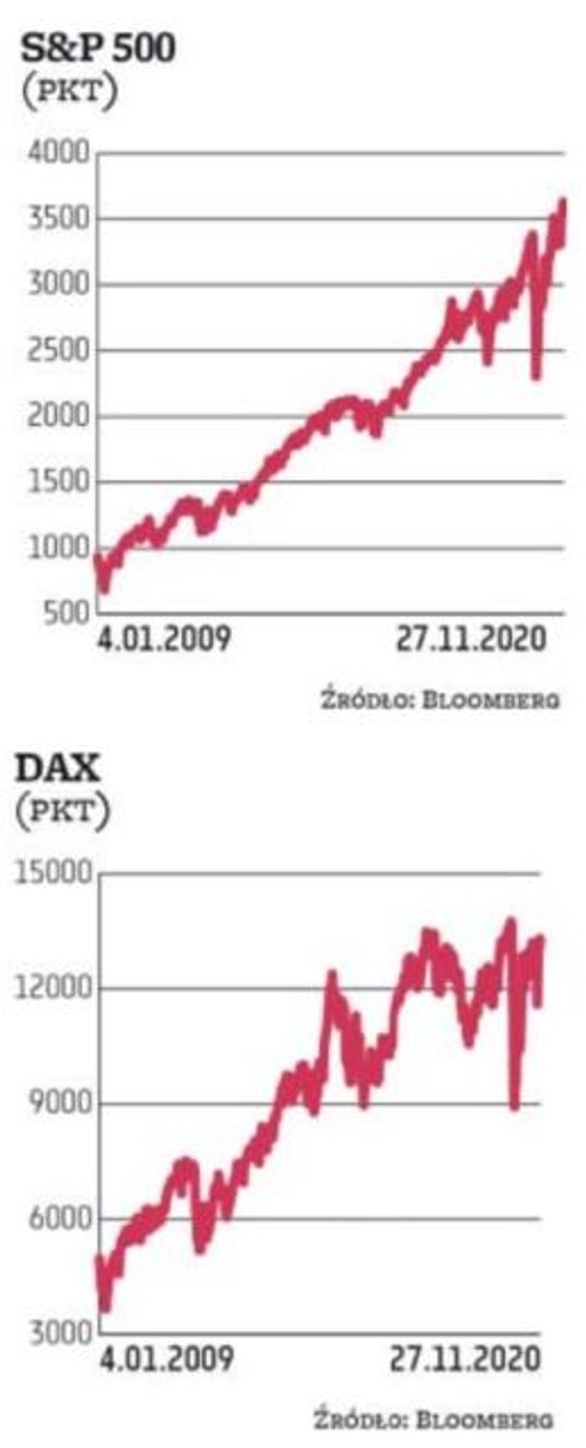 Pewnego rodzaju fenomenem jest znakomita postawa spółek sektora finansowego. WIG-banki wzrósł w listopadzie o 46,5 proc. To najmocniejszy miesięczny skok tego subindeksu od sierpnia 1993 r., czyli od ponad 27 lat. Biorąc pod uwagę skalę wyzwań stojących przed bankami i warunki, w jakich przyjdzie im działać w najbliższych latach, taka eksplozja optymizmu może dziwić i budzić nieufność. Zasięg przeceny w tym sektorze był znaczący, ale odreagowanie wydaje się przesadzone. Zresztą droga do poziomu z początku roku jest jeszcze bardzo długa i wymagałaby wzrostu o 50 proc. W każdym razie akcje banków mocno wspierały zwyżkę indeksu naszych blue chips. Mimo wszystko chwała bohaterom, którzy kupowali papiery Santandera, PKO BP Aliora, czy Pekao. Wszyscy oni zarobili w miesiąc od 40 do ponad 50 proc., a tylko w ostatnich dniach po 3–5 proc. Zamieszanie z koronawirusem i decyzjami rządu związanymi z epidemią nie zaszkodziło nadmiernie firmom odzieżowym. Akcje CCC zwyżkowały do czwartku o ponad 7 proc., a od początku miesiąca poszły w górę o dwie trzecie. Niewiele mniej zwyżkowały papiery LPP. Potężna zmienność wciąż jest cechą charakterystyczną notowań walorów JSW. W listopadzie szły one w górę o 64 proc., po październikowym spadku o ponad 40 proc. i poprzedzającym go wzroście o 63 proc. we wrześniu. Tak duża aktywność „spekulantów" to bardzo dobry znak dla naszego parkietu. Nieco mniejsza niż poprzednio zmienność charakteryzowała w ostatnich dniach notowania akcji Allegro. W trakcie pierwszych czterech sesji minionego tygodnia taniały one o ponad 5 proc. Wahania między 73 a 81 zł to jednak nie to samo co widziana w poprzednim tygodniu rozpiętość mieszcząca się w przedziale 65 i 79 zł. Jednoznaczną tendencję wciąż trudno tu rozpoznać. Tydzień kończy się też niejednoznacznie na rynku papierów CD Projektu. Do czwartku taniały one o nieco ponad 3,5 proc. Bilans listopada to zwyżka o 7 proc., co w porównaniu z październikową przeceną sięgającą niemal 20 proc. jest wynikiem całkiem niezłym. Większych emocji nie spowodowała publikacja wyników finansowych za trzeci kwartał ani oczekiwanie na debiut gry „Cyberpunk 2077", ale w najbliższych dniach należy się liczyć ze wzrostem napięcia i wahań kursu akcji spółki. Zastanawiać może słabe zachowanie papierów Dino, które do czwartku zniżkowały o ponad 6 proc., choć w skali miesiąca rosną o 17 proc., ustanawiając na początku miesiąca historyczny rekord.