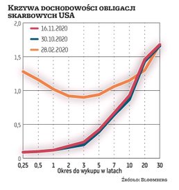 Analitycy podkreślają też, że banki centralne będą zmuszone do utrzymywania rentowności obligacji skarbowych na niskim poziomie tak długo, jak długo rządy będą się borykały z dużym deficytem w finansach publicznych. A te pozostaną prawdopodobnie wysokie jeszcze przez cały przyszły rok. – Przestrzeń do wystromienia krzywej rentowności jest obecnie ograniczona. To jest ważne nie tylko dla inwestorów z rynku długu, ale też ma znaczenie dla innych klas aktywów – zauważył w poniedziałkowej analizie Jeroen Blokland, zarządzający funduszami w Robeco. Jak przypomniał, akcje spółek cyklicznych oraz finansowych, podobnie jak tzw. spółek wartościowych, zwykle wyprzedzają szeroki rynek w czasie, gdy rosła rentowność długoterminowych obligacji.
