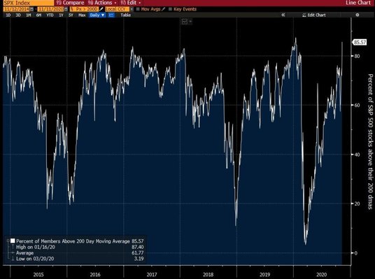 „S&P 500 zbliża się do naszego głównego celu w scenariuszu 3700 do czerwca 2021 r. Jednak w naszym scenariuszu zwyżkowym spodziewalibyśmy się, że do czerwca S&P 500 osiągnie 3900. Poniedziałkowe dane zmniejszają ryzyko, że w 2021 roku nie zostanie opracowana żadna skuteczna szczepionka, jednocześnie zwiększając prawdopodobieństwo scenariusza wzrostu ".